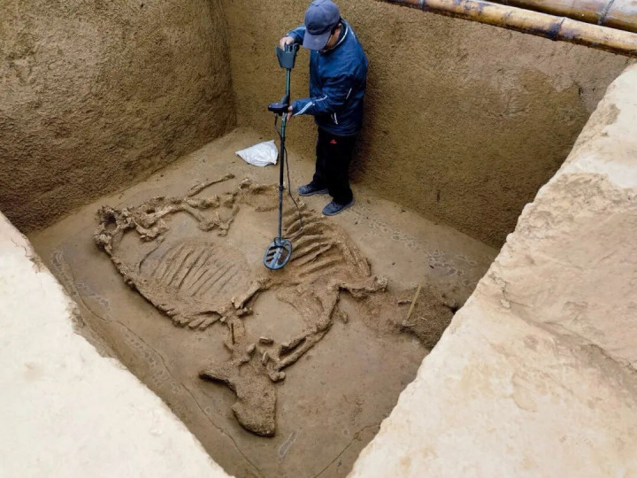 殷墟王陵区位于河南安阳洹河北岸,与洹河南岸的殷墟宫殿宗庙遗址隔河相望,是商代最高等级的祭祀与埋葬场所。1978年,考古工作者曾在此发现过一些动物祭祀坑,坑中多是马,零星夹杂着象、猴子等野生动物——数量寥寥,却足以让人窥见三千年前这片区域的特殊功用,但那时的发掘手段有限,许多疑问只能悬置。