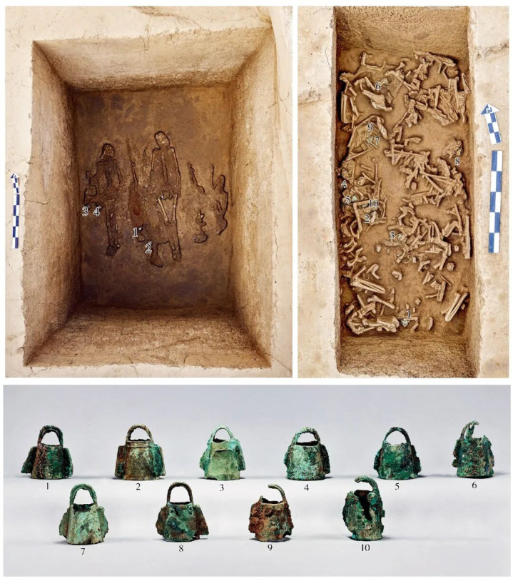 被考古队员称作“鸟坑”的K93,坑内散落着天鹅、鹤、雁、隼、雕等5个种属的鸟类骨骼,可惜因保存较差,骨架已然散乱,无法分辨究竟有多少只个体,坑里的10只铜铃也无法判定具体系结位置。